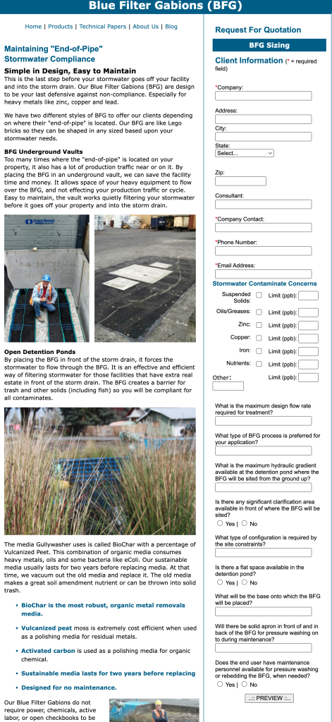 Gullywasher creates unique stormwater treatment systems in order to help companies stay compliant with state and federal water regulations. They’re a highly resourceful and knowledgeable team always looking forward and pioneering new water remediation techniques. That said, their website was stuck in the dark ages.