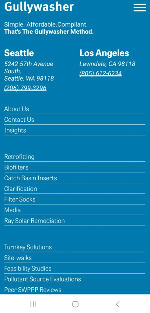 After the website was launched, we checked in to measure its effectiveness and impact. We used website analytics follow ups with the client to make any necessary improvements. Gullwasher.com is performing well, with high user engagement, low bounce rates, and a healthy conversion rate on the forms. Overall, the website has helped the client establish their online presence and generate more leads for their stormwater compliance systems and consulting services.